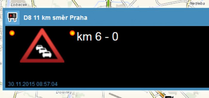 Kvůli tomu stálaněkolikakilometrová na dálnici D8 směřující do Prahy, která narůstala. Sjízdná byla pouze krajnice. Zpoždění nabrala doprava i vedlejších silnicích, např. na 608, která vede z Odolené Vody přes Klíčany a Zdiby do Prahy.