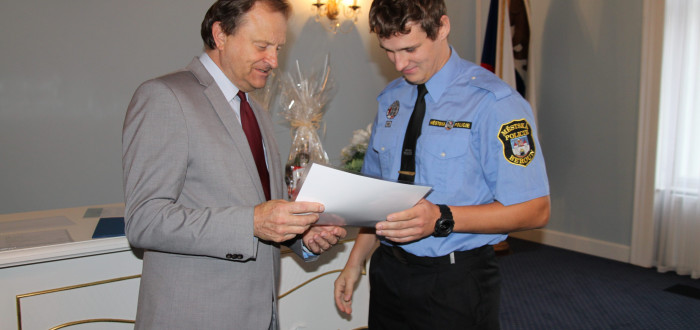 Výročí založení městské policie bylo příležitostí, aby se strážníci společně s vedením města a hosty sešli v obřadní síni radnice.