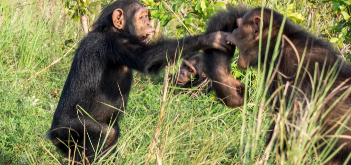 Jane Goodall není jediná, koho pronásledují krvavé obrazy vražd mezi skupinami šimpanzů. Američtí vědci ohlásili podobné scény násilí mezi šimpanzi v národním parku Kibale v Ugandě. Nelítostné boje těchto primátů podnítily koalice dospělých samců s jediným cílem – rozšířit jejich území. Oblasti, kde se bojovalo, odpovídaly zpustošené zemi dobyté násilím.